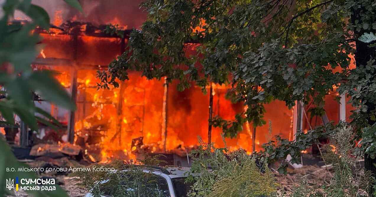 Одна людина загинула у місті Суми внаслідок російського удару дронами вранці 12 вересня. Про це заявили в.о. міського голови Сум Артем Кобзарь та голова ОВА Олег Григоров."Два вибухи, які сьогодні чули всі в місті, — це приліт ворожих безпілотників по нежитловому приміщенню. Інформація про поранених або загиблих уточнюється", – повідомив голова міста.t.me/hryhorov_olegЗа словами голови ОВА Олега Григорова, у палаючому будинку міг перебувати охоронець, з ним поки що немає зв'язку.Через загрозу повторних ударів фахівці ДСНС не можуть розпочати рятувально-пошукові роботи та ліквідацію наслідків. Пізніше Григоров додав, що на місці попадання ворожих ударних БпЛА в Сумах тривають аварійно-пошукові роботи та ліквідація наслідків атаки."Залучені всі екстрені служби", – зазначив голова ОВА.Оновлено: Пізніше він повідомив, що під завалами будівлі виявили тіло загиблого охоронця. "Після першого влучання БпЛА чоловік ще виходив на зв’язок. Після повторного російського удару зв’язок із ним зник", – розповів Григоров.